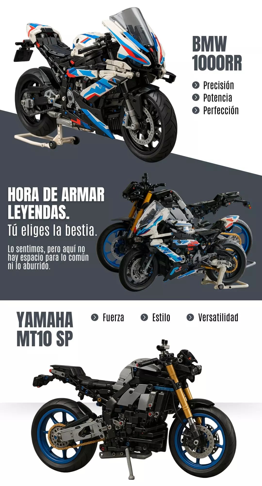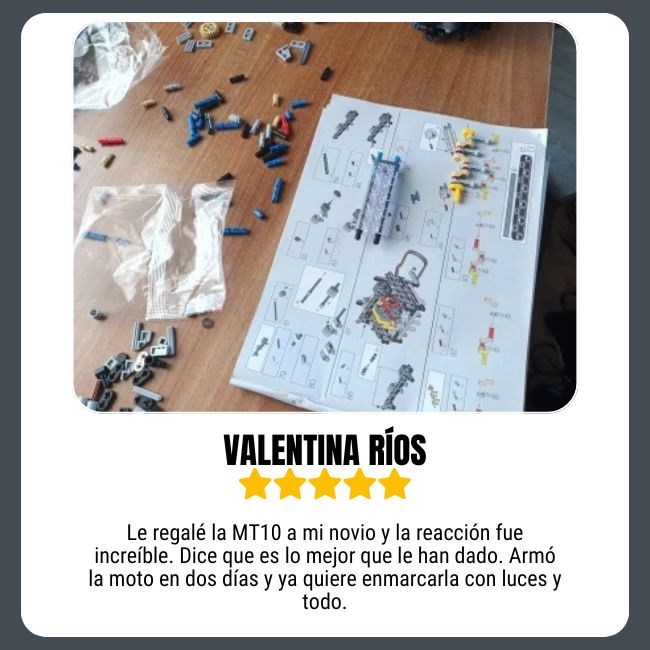 ✓ Diseño con precisión realista – Cada pieza encaja con exactitud para recrear fielmente los detalles icónicos de la BMW 1000RR y Yamaha MT-10 SP.